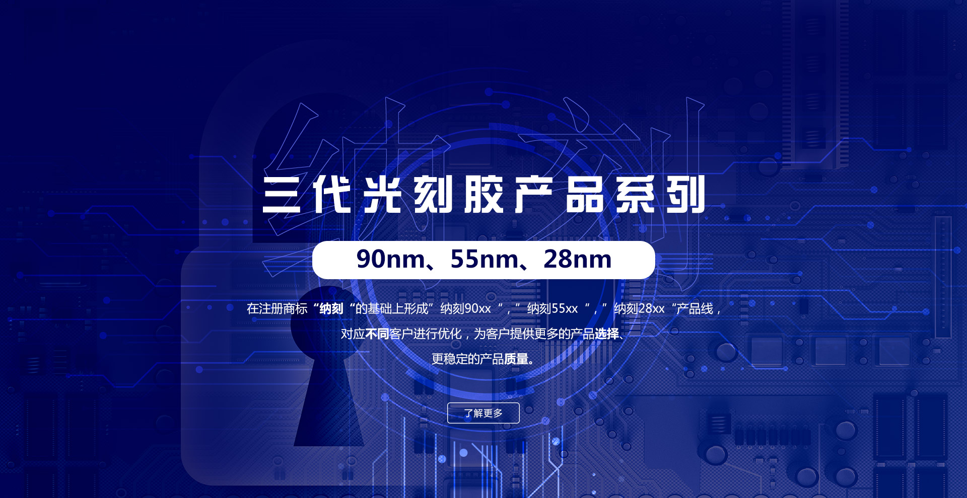 廣微納公司由曾任職國外知名半導體公司,具有15年光刻膠工藝、研發、質量管理和線上使用經驗的光刻膠專家創辦。技術骨干團隊在光刻膠以及原材料的合成配方、產品導入以及大規模量產等方面具有豐富的實際經驗,與行業國際先進水平接軌,為客戶提供定制化、差異化的高端半導體用光刻膠解決方案。